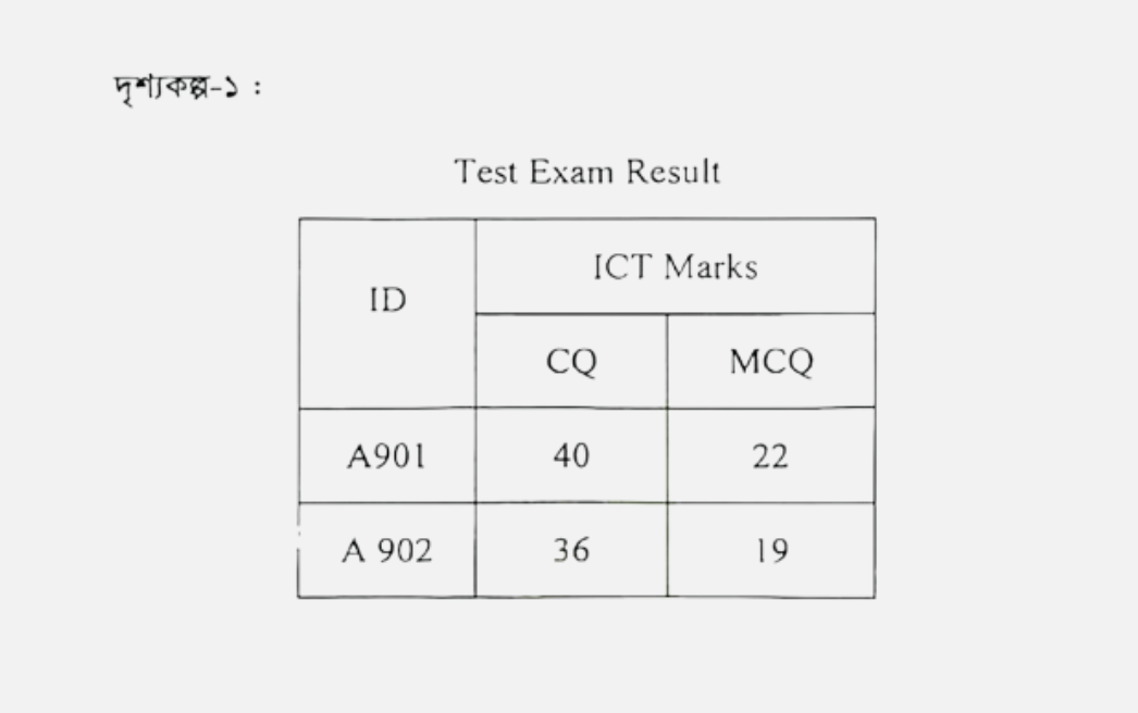 49) প্রমিতা একটি ওয়েব সাইট তৈরির জন্য Home.html, Admission.html এবং Result.html নামে ৩টি পেইজ তৈরি করল। Result.html পেইজে নিম্নরূপ ফলাফল প্রদর্শিত হয়: