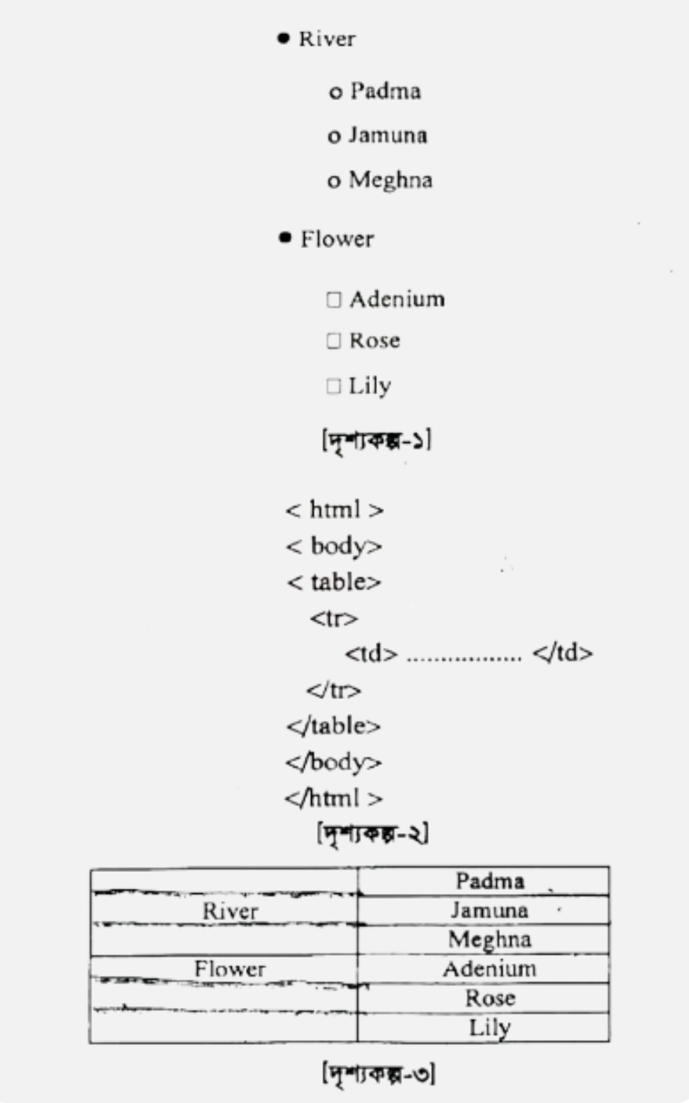 গ. উদ্দীপকের ন্যায় আউটপুট পেতে প্রয়োজনীয় html কোড লেখ।