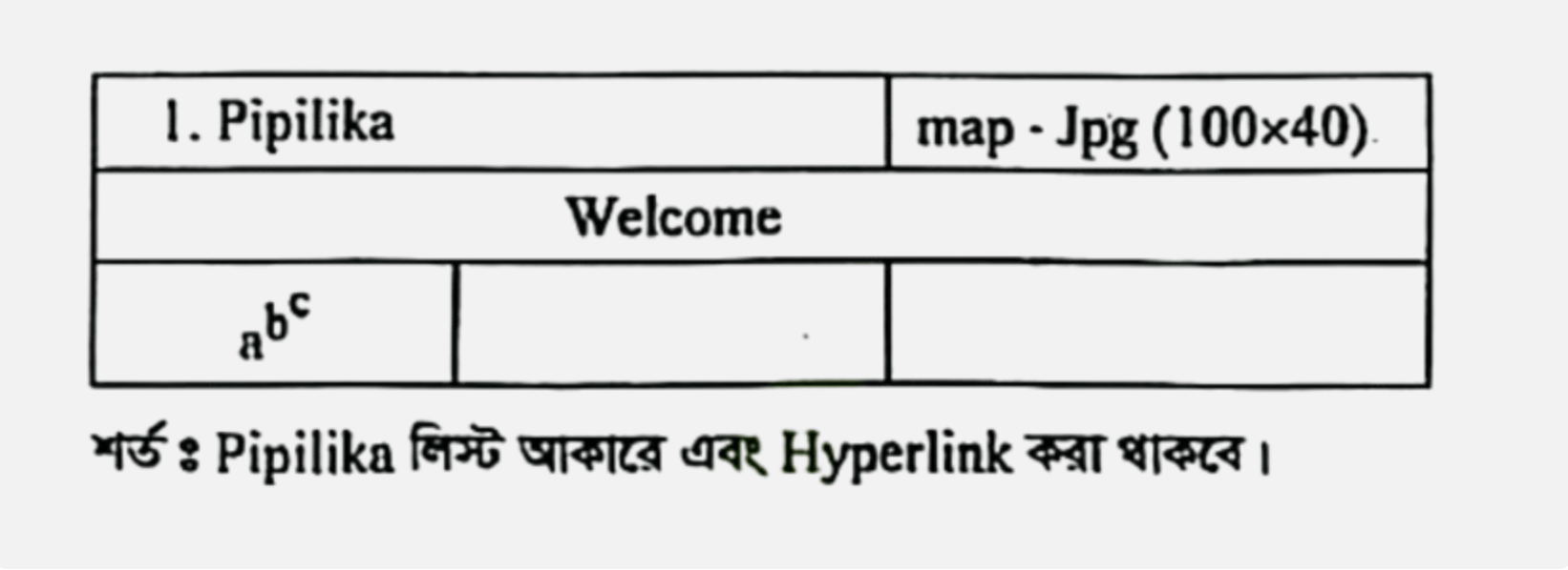 উদ্দীপকের টেবিলটিতে Pipilika ওয়েবসাইটটি লিংক করা আছে বাংলাদেশের মানচিত্র (180 × 100) যুক্ত করা আছে।