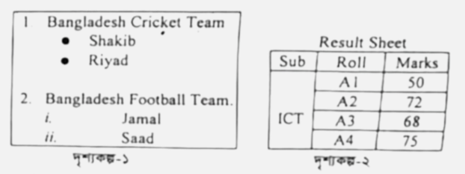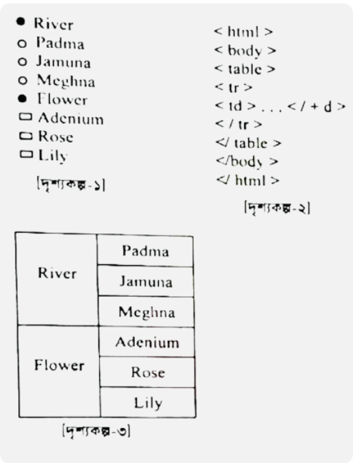 গ) দৃশ্যকল্প-১ এর মত ফলাফল পাওয়ার জন্য HTML কোড লেখ।