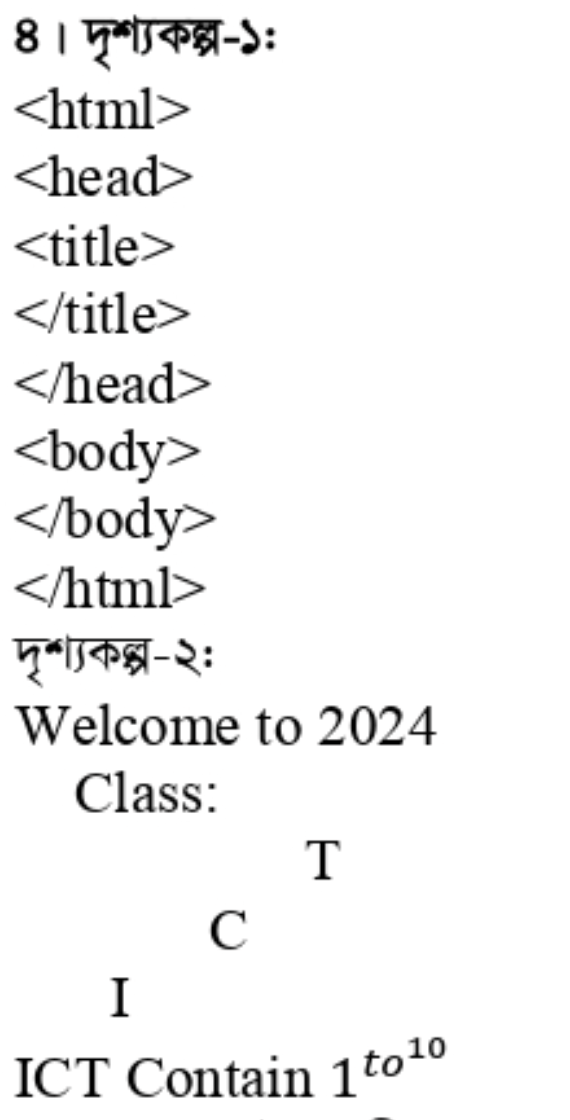 গ. চিত্র-১ কে ওয়েবপেজে প্রদর্শনের জন্য HTML কোড লেখ।